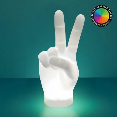 Gift Republic Peace Sign Lamp Colour Changing Silicone Mood Light USB Rechargeable Soft Touch Hand Gesture for Bedrooms, Desks, or Groovy Room Décor, White