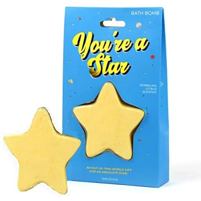 Show a special someone that they are a star with this star-shaped, golden bath bomb A unique gold-shimmering sparkle bath bomb Comes in a refreshing citrus scent An out-of-this-world gift for an absolute star Bath bomb weighs approximately 100 grams