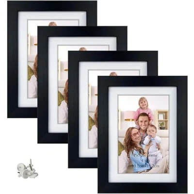 Giftgarden 4x6 Photo Frames Set of 4, Display Pictures with Mat or 5x7 Photos without for Wall Decor Tabletop Decoration, Black