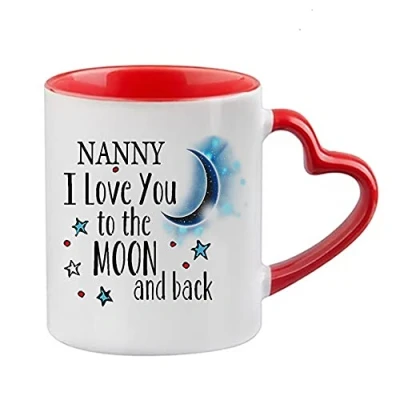 Giftme Mothers Day Themed Nanny I Love You to The Moon & Back Secret Santa Birthday Coffee Tea Mug Unique Heart Handle Ceramic Mug. (Red Mug)