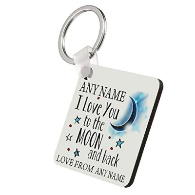Giftme Personalised ANY NAME I love You To The Moon And Back Key ring Keychain MDF Keepsake, Family, Kids, Sentimental present Birthday Present. (MDF Keyring)