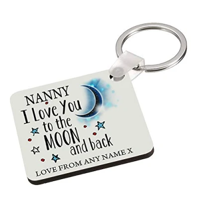 Giftme Personalised Nanny I love You To The Moon And Back Key ring Keychain MDF Keepsake, Family, Kids, Sentimental present Birthday Present. (MDF Keyring)