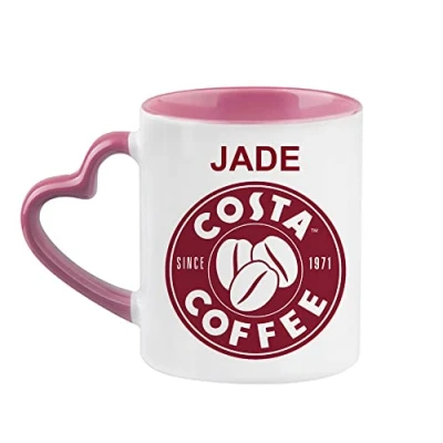 Giftme Personalised with Any Name Costa Unique Heart Handle Ceramic Mug Coffee Tea Mug. (Pink Mug)