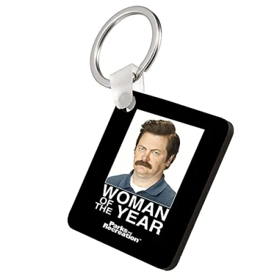 Giftme Ron Swanson Woman of the Year Birthday secret santa Key Ring Keychain A5, MDF ring. (MDF Keyring)