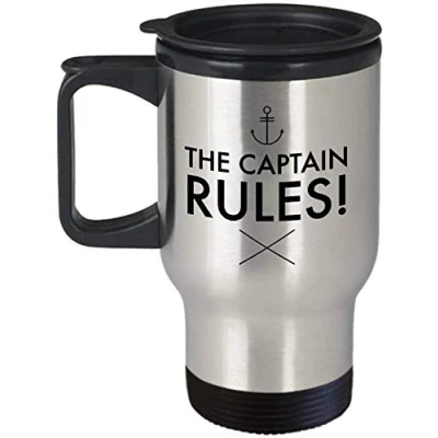 Giftme The Captain Rules Themed 14 oz Silver Travel Mug