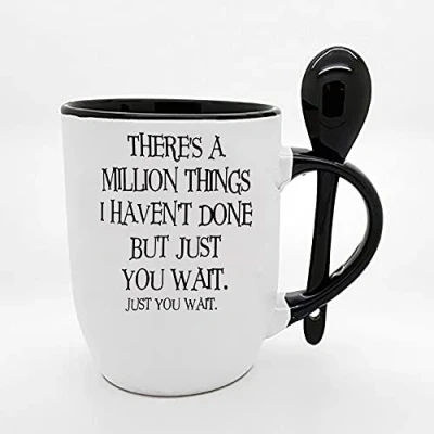 Giftme There's a Million Things i haven't Done But Just You Wait Hamilton Musical Birthday Secret Santa Coffee Tea Mug Unique Spoon Ceramic Mug. (Black Spoon)