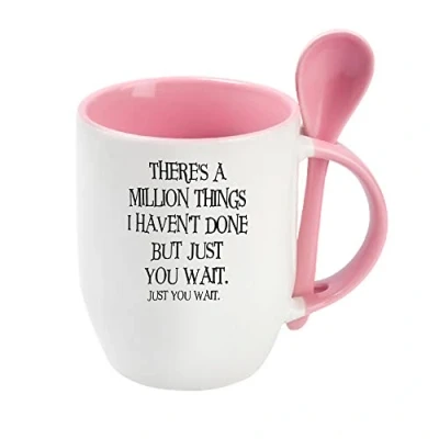 Giftme There's a Million Things i haven't Done But Just You Wait Hamilton Musical Birthday Secret Santa Coffee Tea Mug Unique Spoon Ceramic Mug. (Pink Spoon)