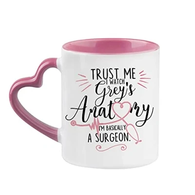 Giftme Trust Me I Watch I'm Basically A Surgeon Birthday Secret Santa Coffee Tea Mug Unique Heart Handle Ceramic Mug. (Pink Mug)