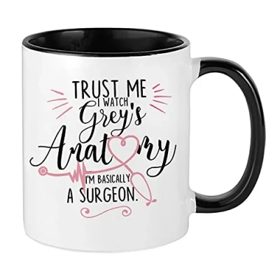 Giftme Trust Me I Watch I'm Basically A Surgeon Birthday Secret Santa Coffee Tea Mug Unique Inside Coloured Ceramic Mug. (Black and Handle)