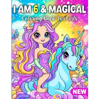 Gifts for 6 Years Old girls _ I Am & Magical: Age Five Birthday Coloring Book Kids: Cute Unicorns, Mermaids, Princesses, and Creative Fun 6th Presents