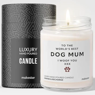 Gifts for Mum Soy Wax Scented Candle Worlds Best Dog Mothers Day Presents Birthday Or Christmas from Daughter Son