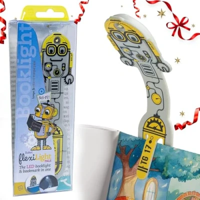 LIGHTWEIGHT AND FLEXIBLE DESIGN: Gifts for Readers & Writers Flexilight Pal kids for reading in bed bends easily to any angle, so kids can shine its bright 8-lumen LED exactly where they need it. Our cute reading light is light and ready to use with 2 long-lasting CR2016 batteries included with low voltage for safety and a screw-on battery cover to prevent accidental access. Great for little hands to use as a portable reading light bookmark for hands-free reading anytime. COLOURFUL AND FUN ROBOT GREY DESIGN BOOKMARK WITH LIGHT: When kids finish reading, they can pop the Flexilight Pal as a sleek flat bookmark into their book as a bright, slim bookmark light. The fun robot grey design, with its mechanical details and friendly face, adds a playful and futuristic touch, making it easy to save their page while bringing a cheerful character to every story. The clip-on feature ensures it stays in place, making reading more enjoyable for kids. GREAT FOR BEDTIME STORIES: Designed for kids s for reading at night, our cute clip on provides a soft but clear glow that helps kids read comfortably without disturbing anyone else. Ideal among kids reading lights for books in bed, it’s great for cosy night-time reading and quiet moments before sleep. The easy on/off button is simple for kids to operate, adding to the safety and convenience. COMPACT YET BRIGHT LIGHT: Measuring just 14cm by 3cm, the Flexilight Pal is a powerful kids reading light clip with 8 lumens of clear, steady LED illumination. Built tough and with batteries included, our clip on reading light for kids is a handy booklight with clip for young readers who want bright, fuss-free lightweight s. The secure attachment ensures the light stays in place during use, preventing any slipping or falling for added safety. AWARD-WINNING GIFT FOR YOUNG READERS: Chosen as aGift of the Year by the Giftware Association, Gifts for Readers & Writers Flexilight Pal is a brilliant kids gift. Whether as a kids or a clip on s for reading at night, it combines function and style for birthdays, Christmas, or any special occasion.