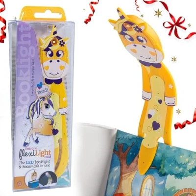 LIGHTWEIGHT AND FLEXIBLE DESIGN: Gifts for Readers & Writers Flexilight Pal kids for reading in bed bends easily to any angle, so kids can shine its bright 8-lumen LED exactly where they need it. Our cute reading light is light and ready to use with 2 long-lasting CR2016 batteries included with low voltage for safety and a screw-on battery cover to prevent accidental access. Great for little hands to use as a portable reading light bookmark for hands-free reading anytime. COLOURFUL AND FUN UNICORN YELLOW DESIGN BOOKMARK WITH LIGHT: When kids finish reading, they can pop the Flexilight Pal as a sleek flat bookmark into their book as a bright, slim bookmark light. The delightful unicorn yellow design, with its sparkling horn and playful smile, adds a magical and joyful touch, making it easy to save their page while bringing a cheerful character to every story. The clip-on feature ensures it stays in place, making reading more enjoyable for kids. GREAT FOR BEDTIME STORIES: Designed for kids s for reading at night, our cute clip on provides a soft but clear glow that helps kids read comfortably without disturbing anyone else. Ideal among kids reading lights for books in bed, it’s great for cosy night-time reading and quiet moments before sleep. The easy on/off button is simple for kids to operate, adding to the safety and convenience. COMPACT YET BRIGHT LIGHT: Measuring just 14cm by 3cm, the Flexilight Pal is a powerful kids reading light clip with 8 lumens of clear, steady LED illumination. Built tough and with batteries included, our clip on reading light for kids is a handy booklight with clip for young readers who want bright, fuss-free lightweight s. The secure attachment ensures the light stays in place during use, preventing any slipping or falling for added safety. AWARD-WINNING GIFT FOR YOUNG READERS: Chosen as aGift of the Year by the Giftware Association, Gifts for Readers & Writers Flexilight Pal is a brilliant kids gift. Whether as a kids or a clip on s for reading at night, it combines function and style for birthdays, Christmas, or any special occasion.