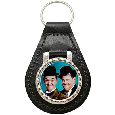 Giftshop UK Laurel and Hardy Leather Key Fob