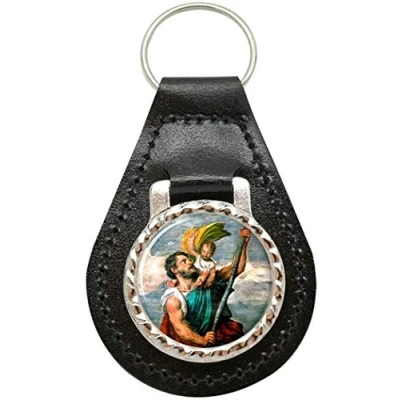 Christain Symbols Silver Metal and Black Leather Pear Shape Size 45mm x 80mm Genuine Bonded Leather