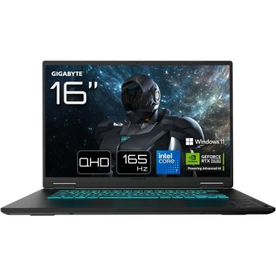 This 16-inch Gigabyte laptop gives you crisp, vibrant detail on its WQXGA screen. The 165 Hz refresh rate keeps everything looking smooth, whether you're editing or jumping into fast-paced action. The Intel® Core™ 7 processor gives you plenty of power for demanding jobs. And the RTX 5080 graphics make games, creative work and 3D projects look great. Good to know - Dolby Atmos audio makes films, music and games feel more immersive- Dual-fan cooling helps things stay steady during long gaming or editing sessions- RGB backlit keyboard makes typing easier in low light and adds a stylish touch- 32 GB LPDDR5X RAM keeps things running smoothly, even with multiple tabs open - 1 TB SSD storage gets your games and files up fast and gives you loads of space