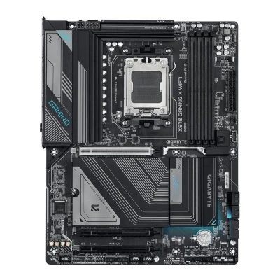 This GAMING X motherboard is the perfect base for your gaming PC. It'll let you squeeze every bit of power from an AMD 9000 Series processor. With the Twin Digital VRM Design you can safely overclock the CPU and push it to the max. There are 4 DIMM slots that let you plug in up to 256 GB DDR5 RAM - that's plenty even for the most powerful systems. And you can forget about slow loading. The PCIe 5.0 M.2 SSD slots mean you can install blazing fast drives.Good to know- WiFi 7 gives you incredibly fast wireless internet, and there's 2.5 Gigabit Ethernet, too- With AMD EXPO you can overclock compatible DDR5 RAM up to 8200 MT/s- The Advanced Thermal Design keeps your motherboard cool even with high-end components- AIO Fan Control gives you precision control over your cooling- To make building a PC easier, it's got user-friendly EZ-latches for some of the components- There's 2 native USB 4 Type-C ports with speeds up to 40 Gbps for high-speed accessories- Connect loads of LEDs to create unique custom lighting controlled by Gigabyte RGB Fusion