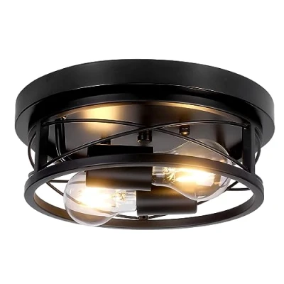 RETRO FARMHOUSE INDUSTRIAL STYLE: Elevate your living spaces with the trendy minimalistic open design Giggi round metal cage black industrial ceiling lights, giving 360° illumination, lighting up the whole room. Perfect ceiling lights for bedroom, living room lights, kitchen lights ceiling, and hallway ceiling light PERFECT FOR EVERY ROOM: These retro yet modern ceiling lights create a warm and cosy atmosphere in any room. Enhance your living room, kitchen, bedroom, or dining area with this industrial ceiling light. Perfect black ceiling lights for living room, bedroom ceiling light, kitchen ceiling light, dining room lights ceiling, and hallway lights ceiling VERSATILE ELEGANT ILLUMINATION: The ceiling light provides flexibility & ease, featuring two E27 bases for light fittings ceilings, compatible with dimmer switches. Use any E27 screw bulb (BULBS NOT INCLUDED), from smart bulbs to LED, retro, incandescent (MAXIMUM DIEMSNSIONS: LENGTH 11cm, DIA 6cm) etc. The ceiling light fittings are easy to clean & replace bulbs, making maintenance a breeze PREMIUM QUALITY & EASY INSTALLATION: Crafted from premium iron with multi-layered paint which is heat, rust & corrosion resistant, our ceiling light's well-made design ensures durability and longevity. No assembly headaches! The flush ceiling lights comes pre-assembled with super easy installation. Compact size (Dia 26cm x Height 10cm) perfect for living room lights ceiling, kitchen light fittings, and bedroom lights ceiling. UNMATCHED CUSTOMER SUPPORT: As a trusted British brand, Giggi offers top-quality lighting products which complies with UK and EU regulations. Experience exceptional customer service and timely assistance for this black chandelier ceiling light, providing value for money. Its an ideal ceiling lamp for bedroom ceiling lights, hallway lighting, kitchen ceiling lights & beyond