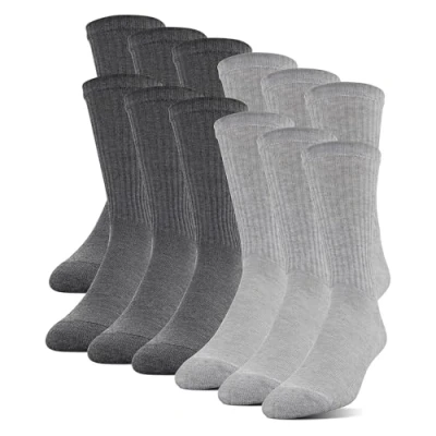 Gildan mensPolyester Half Cushion Crew Socks, 12 pack Socks gray