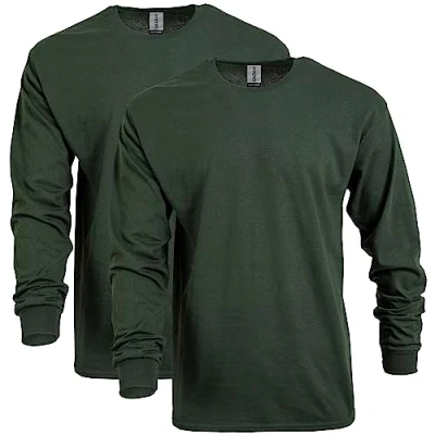 Gildan Unisex Adult Heavy Cotton Long Sleeve T Shirt, Style G5400, 2 Pack, Forest Green, XXL