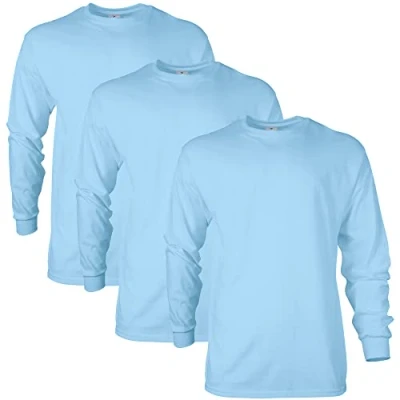 Gildan Unisex's Ultra Cotton Long Sleeve T Shirt, Style G2400, Multipack, Light Blue (3 Pack), 3XL (Pack of 3)