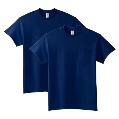 Gildan Unisex's Ultra Cotton T Shirt with Pocket, Style G2300, 2 Pack, Navy, S (Pack of 2)