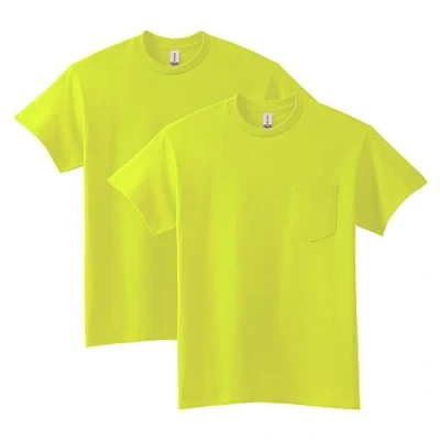 Gildan Unisex's Ultra Cotton T Shirt with Pocket, Style G2300, 2 Pack, Safety Green, XL (Pack of 2)
