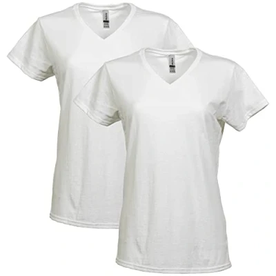Gildan Women's Heavy Cotton V Neck T Shirt, 2 Pack, White, S