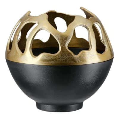 Elegant design: the Branca lantern made of aluminium in gold and black adds a stylish touch to any room and fits perfectly with modern interior styles. Versatile use: ideal for pillar candles, it creates a warm and welcoming atmosphere in living rooms, on patios or on special occasions. Practical details: equipped with removable lid and felt gliders, it protects surfaces and allows easy adjustment of the candles. DURABLE MATERIAL Made of high quality aluminum, it provides durability and stability, ideal for indoor and outdoor use. COMPACT SIZE With a height and diameter of 21 cm, it is space-saving yet an eye-catching decorative piece.