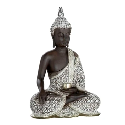 Buddha "Mangala" Dark brown/white wiped, with glass decoration Brown Resin Nice gift for your wife, husband, grandma and grandpa, best friend, best friend on various occasions such as birthday, wedding, anniversary, Christmas, Mother's Day or Father's Day.