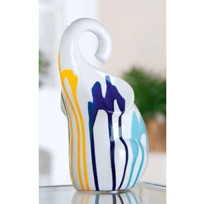 ELEGANT CERAMIC ELEPHANT SHAPED FIGURINE Adds a touch of exotic and style Perfect for living rooms, offices or as a gift idea. HIGH QUALITY ICING The smooth, glossy white finish with multi-color accents makes for an appealing and durable design. Practical felt pads: protect your furniture from scratches and allow easy movement of the figure without damage. Compact dimensions: at 26 cm height, 14 cm width and 12.5 cm depth, the figure fits perfectly on shelves, tables or windowsills. VERSATILE DECORATION The timeless elephant shape blends seamlessly into various home styles and attracts everyone's attention.