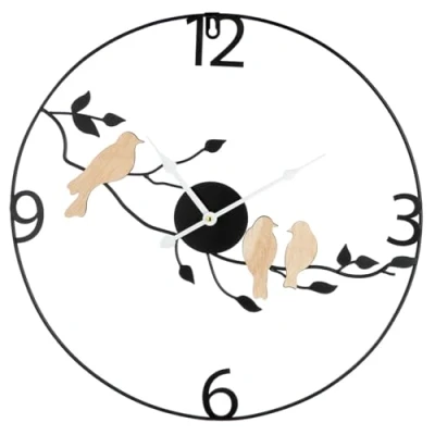 ELEGANT BIRD WALL CLOCK - Adds a natural and stylish touch to any room. High quality metal in matte black: durable and timeless in design. Generous diameter of 50 cm: perfect for living rooms, offices or hallways. EASY INSTALLATION Requires only one AA battery (not included). MULTI-PURPOSE - Fits modern and classic home styles.