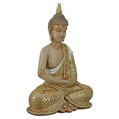 Buddha "Mangala" With gold-coloured appliqués Brown, Gold Resin Nice gift for your wife, husband, grandma and grandpa, best friend, best friend on various occasions such as birthday, wedding, anniversary, Christmas, Mother's Day or Father's Day.