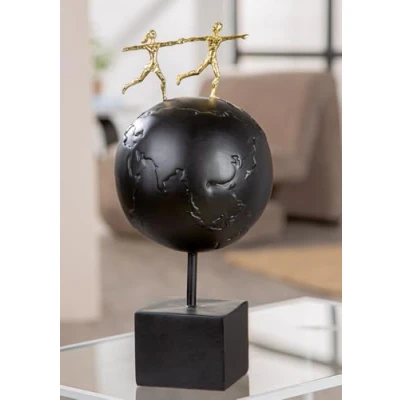 Elegant sculpture made of resin in black with gold accents, ideal for modern living spaces. Matte metallic finish gives the sculpture a classy look and fits perfectly with contemporary decor. Representation of Earth and Couple symbolizes connectedness and cosmopolitanism, an inspirational work of art. Compact dimensions (33.5 x 15 x 15 cm) make them versatile, ideal for shelves or tables. Includes felt pads to protect your furniture surfaces, easy and safe to position.