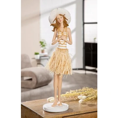 ELEGANT RESIN FIGURE: The 59cm tall Suzanne stands out with its creamy white colourway and natural accents, ideal for stylish living spaces. UNIQUE DESIGN The striped surface and raffia skirt give the figure a special touch that attracts attention. Gentle on surfaces: Equipped with felt pads, Suzanne protects your furniture from scratches and ensures a secure stand. VERSATILE DECORATION Perfect for living room, bedroom or office to create a warm and welcoming atmosphere. QUALITY CRAFTSMANSHIP The matte finish and detailed design make Suzanne a durable and timeless piece of decoration.
