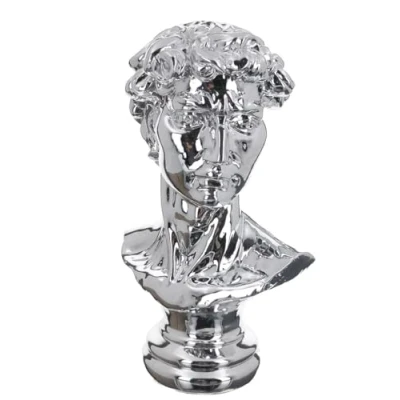 ELEGANT DECORATION The silver resin David figurine adds a stylish metallic look to any room and is a real focal point. High-quality workmanship: the detailed replica of the David head impresses with its precise workmanship and durable quality. MULTIPURPOSE - Ideal for living room, office or gallery - the figurine fits perfectly into modern and classic decor styles. PROTECTION FOR SURFACES Thanks to the felt pads on the bottom, your decor will be protected from scratches while the figure stands steadily. COMPACT SIZE At 37.5cm tall and 24.5cm wide, the figure is big enough to stand out but compact enough for any shelf.