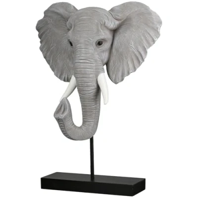 Elegant resin elephant sculpture in grey with black and white accents, ideal for modern living spaces and offices. Brushed finish gives the sculpture a unique texture and feel that makes the artwork stand out. Stable stand thanks to felt base and base (22 x 8 cm), protects surfaces and ensures a secure hold. Compact dimensions (42cm high, 25cm wide, 8cm deep) allow versatile placement on shelves or tables. Perfect gift for art lovers and elephant friends, bringing style and elegance to any room.