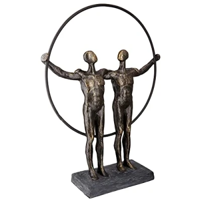 Mit Dir an meiner Seithle ich das Glück. With this saying pendant, the sculpture "two men". The bronze couple in a circle stands on a black base. Thanks to the bronze-coloured surface in antique finish, these figures are an eye-catcher. This wonderful sculpture is not only decoration, but also a statement in its presentation, this is a successful combination. Dimensions: 35.5 x 27 x 8 cm. Clean with a clean, soft cloth. Do not use abrasive or acidic detergents Modern yet classic - great decoration on the sideboard, side table, in the showcase, on the windowsill or living room table. Beautiful gift for your wife, husband, grandma and grandpa, best friend, best friend on various occasions such as birthday, wedding, anniversary, Christmas, anniversary, farewell or retirement
