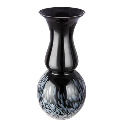 GILDE Decorative Trophy Vase Large Black White Modern Glass Flower Handmade from Coloured Height 43 cm