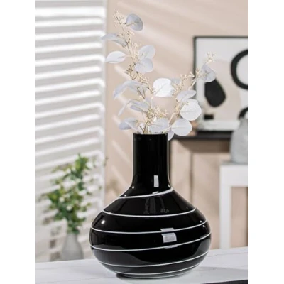 Box contents: 1 x decorative object glass vase made in Europe – modern art black and white – dyed glass. Waterproof – Dimensions: height 28 cm, diameter 24.5 cm Made from glass - clean with a clean, soft cloth - do not use abrasive or acidic detergents Matches interior styles and style mix such as vintage, Scandinavian, boho, country house style, industrial, cozy, shabby chic, colonial, retro and much more With or without accessories - modern yet classic - great decoration on the sideboard, side table, on the windowsill, the living room table or as a floor vase in the hallway and entrance area. Nice gift for your wife, husband, grandma and grandpa, best friend, best friend on various occasions such as birthday, wedding, anniversary, Christmas, Mother's Day or Father's Day.