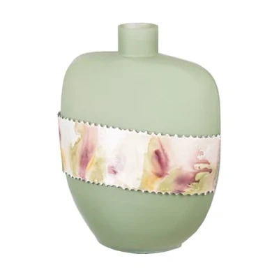 GILDE Decorative Vase Bulbous Glass Flower Table Living Room Colour: Matte Green Height 26 cm
