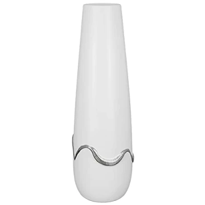 Stylish vases are versatile and reliable talents when it comes to a finished decoration. The ceramic cone vase "Carino" exudes elegance and impresses with unusual details such as the wave-shaped stripe. The colours silver, white and beige enchant the decoration in the dining room, bedroom, bathroom, hallway and entrance area. A decorative object that attracts attention even without any flower decoration. Made of ceramic. Height: 49 cm. Clean with a clean, soft cloth. Do not use abrasive or acidic detergents Modern yet classic - great decoration on the sideboard, side table, in the showcase, on the windowsill or living room table. Great gift for your wife, husband, grandma and grandpa, best friend, best friend on various occasions such as birthday, wedding, anniversary, Easter, Mother's Day or Father's Day.