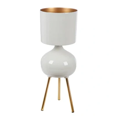 Elegant iron planter in glossy white with gold accents, ideal for stylish living spaces. With a height of 73 cm and a diameter of 25 cm, perfect for larger plants. Glossy finish adds a touch of glamour and elegance to any room. Durable iron material ensures durability and stability, ideal for indoor use. Planter depth of 21.5 cm provides ample space for different plant sizes.