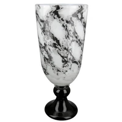 GILDE Decorative Vase Trophy on Base Glass Marble Look Elegant Decoration Living Room Gift Birthday Colours: Black White Height 31 cm