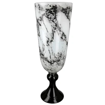 GILDE Decorative Vase Trophy on Base Glass Marble Look Elegant Decoration Living Room Gift Birthday Colours: Black White Height 42 cm