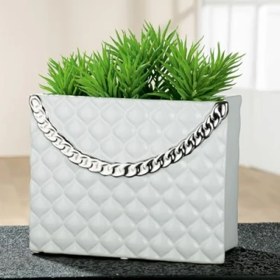 Box contents: 1 x white vase flower pot "Paris" handbag with hinted chain in silver. Waterproof - Dimensions: Width 25.5 cm, Height 20 cm, Depth 13 cm Made from ceramic - clean with a clean, soft cloth - do not use abrasive or acidic detergents Matches interior styles and style mix such as vintage, Scandinavian, boho, country house style, industrial, cozy, shabby chic, colonial, retro and much more With or without accessories - modern yet classic - great decoration on the sideboard, side table, on the windowsill, the living room table or as a floor vase in the hallway and entrance area. Nice gift for your wife, husband, grandma and grandpa, best friend, best friend on various occasions such as birthday, wedding, anniversary, Christmas, Mother's Day or Father's Day.