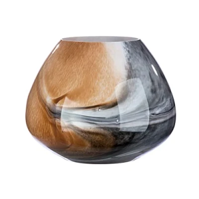 GILDE Draga Glass Vase Decorative Flower Diameter 38 cm Brown Black Marble Look European Manufacture