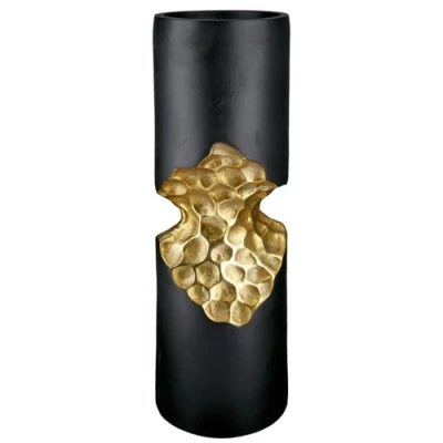GILDE Favo Candlestick Gold/Black Cylindrical Aluminium Height 40 cm x Diameter 13