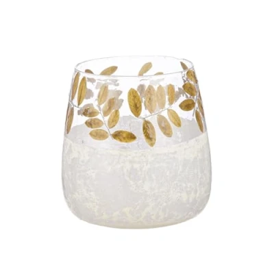 GILDE Foliage Glass Lantern Conical Leaf Design Green/White Height 20 cm x Diameter 19 Candle Light