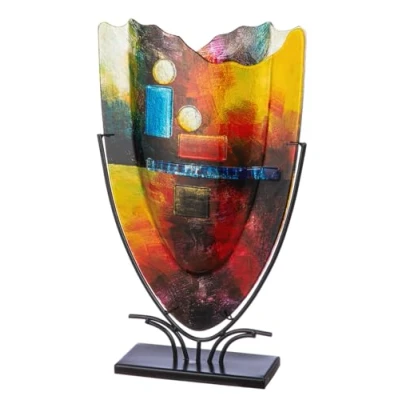 Box contents: 1 x decorative vase on metal stand with hand-painted abstract motif and fused glass elements. Dimensions: approx. height: 58 cm, width: 30 cm, depth: 10.5 cm Please allow for a slight deviation in the size This is not a defect, but is a feature of handmade goods. Please note: this decorative vase is not waterproof. Care instructions: clean this high-quality decorative object and piece of jewellery only with a clean, soft cloth - do not use abrasive or acidic detergents A highlight even without accessories - modern yet classic - great decoration on the sideboard, side table, in the showcase, on the windowsill or living room table. Unique gift for your wife, husband, grandma and grandpa, best friend, best friend on different occasions such as birthday, wedding, anniversary, Christmas, Mother's Day or Father's Day.